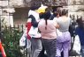 The footage, which was captured on Friday only a few feet from the church’s door shows what appear to be migrants lining up and waiting to enter the building by going down a sidewalk.
